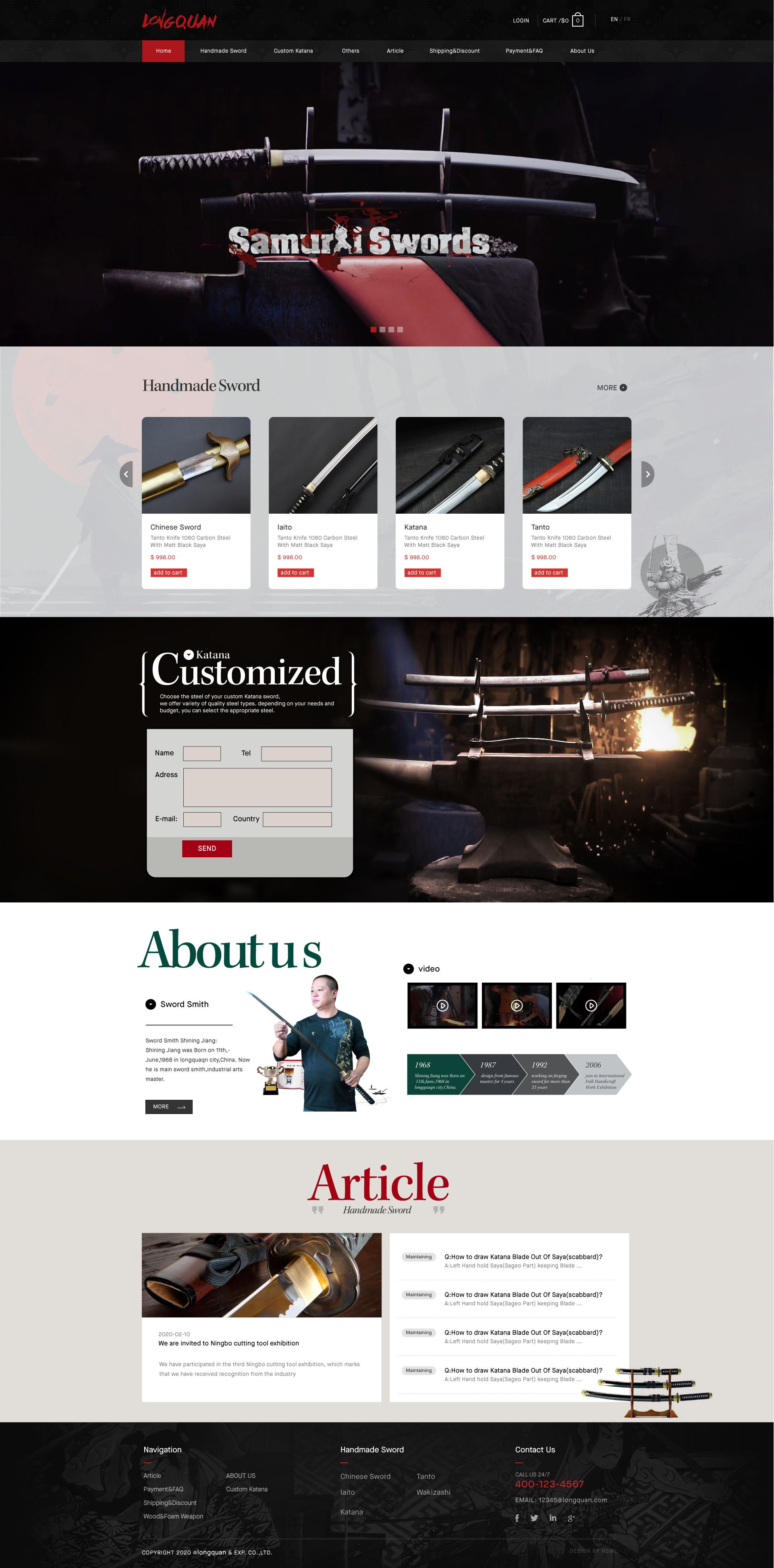 He learned the sword forging and sword design from famous master for 4 years from 1987 to 1991. He has been working on forging sword for more than 25 years after 1992.