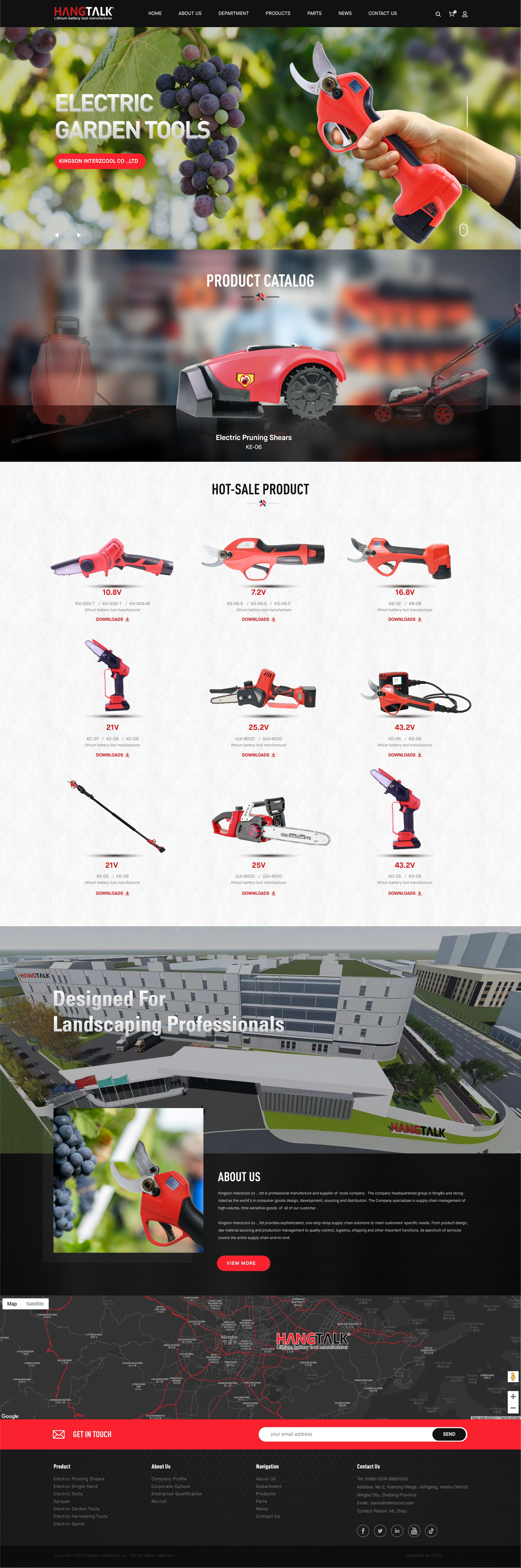 Kingson interzcool co ., ltd is professional manufacture and supplier of electric pruner and electric tying machine and li-battery garden tools company . The company headquartered group in NingBo and recognized as the world's in consumer goods design, development, sourcing and distribution. Best technical and quality let we can cooperation with most of worlds famous brand . Now Kingson company have 2 product line one is professional and the other is DIY to fitting all of our customer requirement .The Company specializes in supply chain management of high-volume, time-sensitive goods of all of our customer . Kingson interzcool co ., ltd provides sophisticated, one-stop-shop supply chain solutions to meet customers' specific needs. From product design, raw material sourcing and production management to quality control, logistics, shipping and other important functions, its spectrum of services covers the entire supply chain end-to-end. Over the years, Kingson has won numerous industry accolades for its performance, governance and sustainability. The Company is committed to the highest operational standards, conducting its business with integrity and good corporate governance practices with control best quality We believe that make best quality is based on the words "it's just the right thing to do".