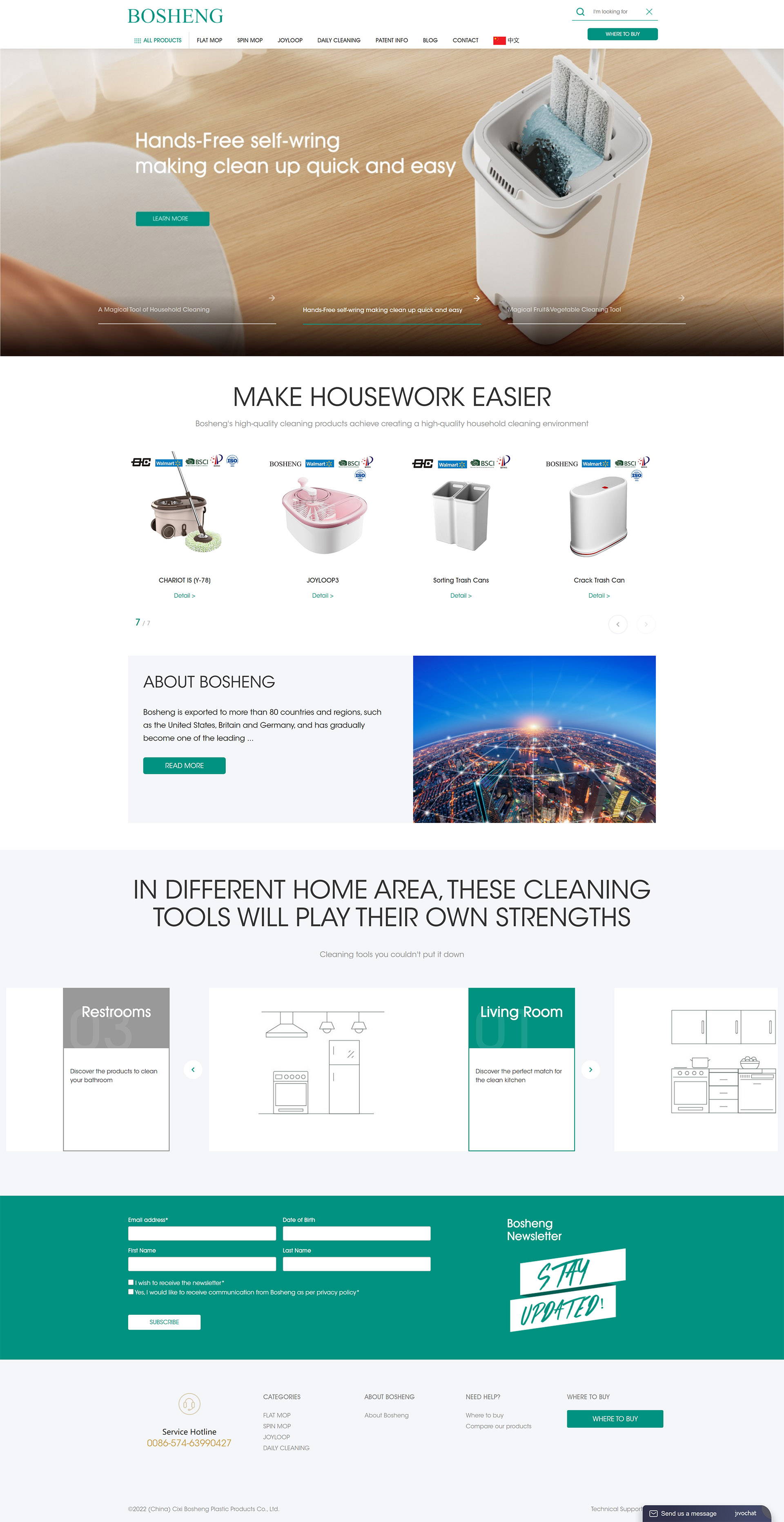 Cixi Bosheng Plastic Products Co., Ltd. was established in 2007. It is an innovative technology enterprise focusing on the research and development, production, sales and service of household cleaning tools. Bosheng has nearly 400 registered patents and created a new industry standard of "hands-free mop". Bosheng committed to becoming a comprehensive household cleaning solution service provider, empowering and increasing efficiency in creating a high-quality household cleaning environment.