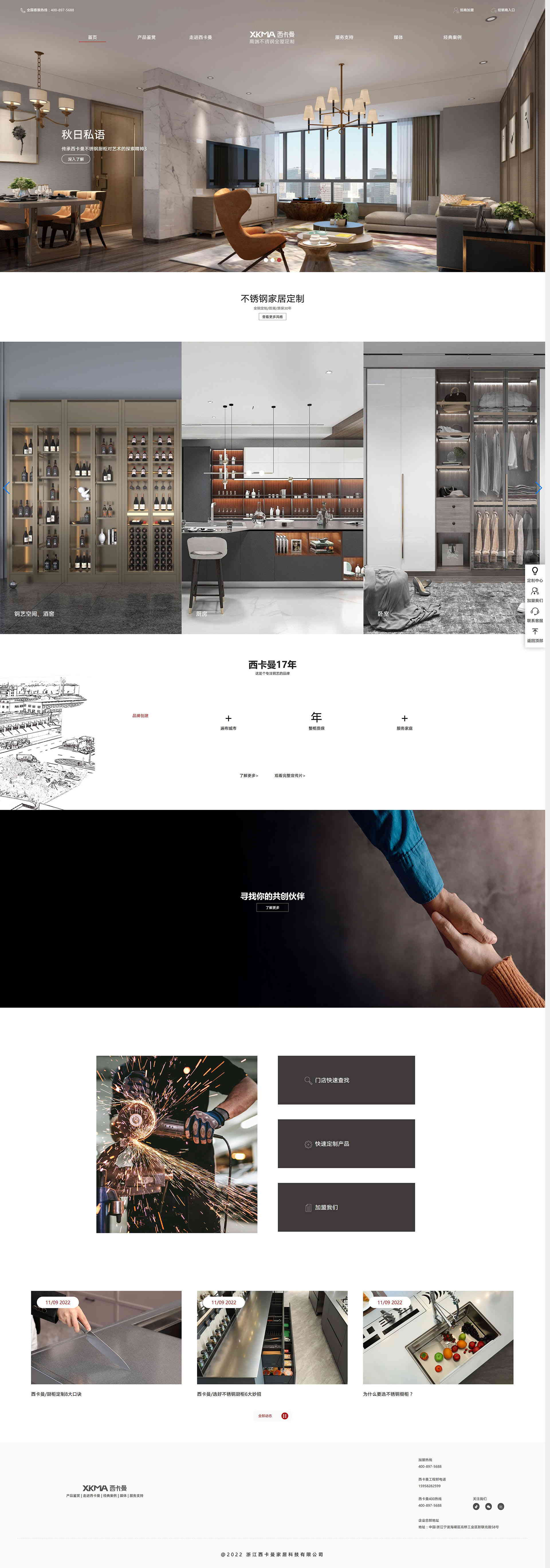 西卡曼----籌建于2005年,是率先將不銹鋼材料引入廚房生活的企業(yè),致力于研發(fā)、生產(chǎn)、銷售高端不銹鋼全屋定,是國內(nèi)不銹鋼全屋整體解決方案的提供者和健康生活方式的倡導(dǎo)者