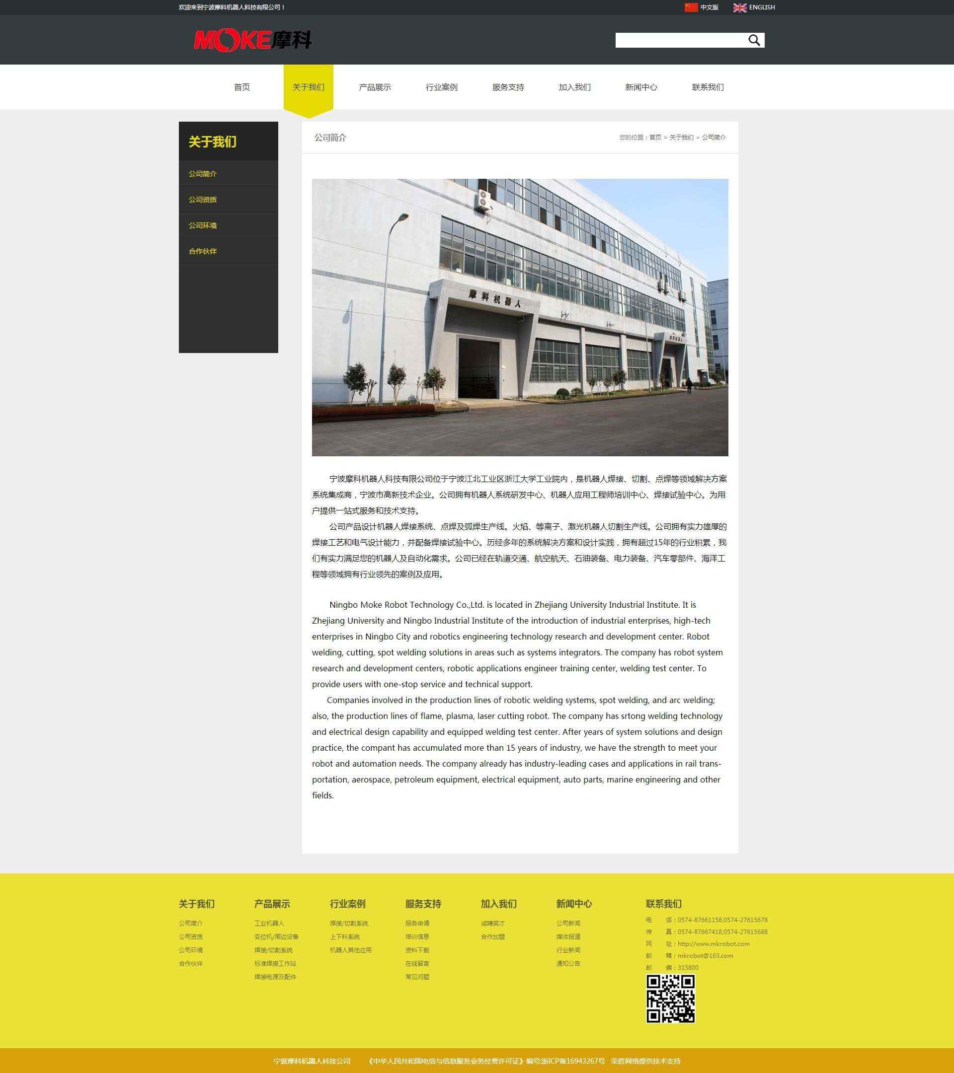 寧波摩科機(jī)器人科技有限公司位于寧波江北工業(yè)區(qū)浙江大學(xué)工業(yè)院內(nèi),是機(jī)器人焊接、切割、點(diǎn)焊等領(lǐng)域解決方案系統(tǒng)集成商,寧波市高新技術(shù)企業(yè)。公司擁有機(jī)器人系統(tǒng)研發(fā)中心、機(jī)器人應(yīng)用工程師培訓(xùn)中心、焊接試驗(yàn)中心。為用戶提供一站式服務(wù)和技術(shù)支持。