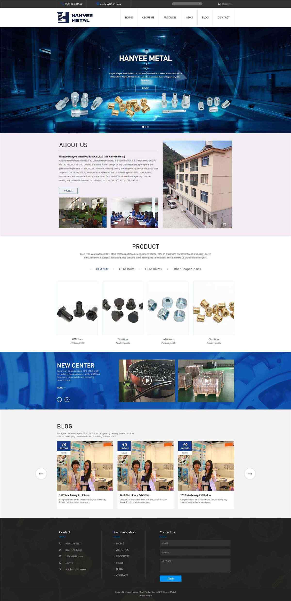 Ningbo Hanyee Metal Product Co., Ltd (NB Hanyee Metal) is a sales branch of SANMEN DING SHENG METAL PRODUCTS Co., Ltd who is a manufacturer of high quality OEM fasteners, spare parts and precision components for automotive, industrial, building, mining and engineering device industries over 15 years. Our factory has 5,000 square km workshop. We do various types of Bolts, Nuts, Rivets, Washers etc with in standard and non-standard. OEM and ODM service is our specialty. We are dealing with national & international standard such as GB, ISO, ASTM, DIN, SAE etc.