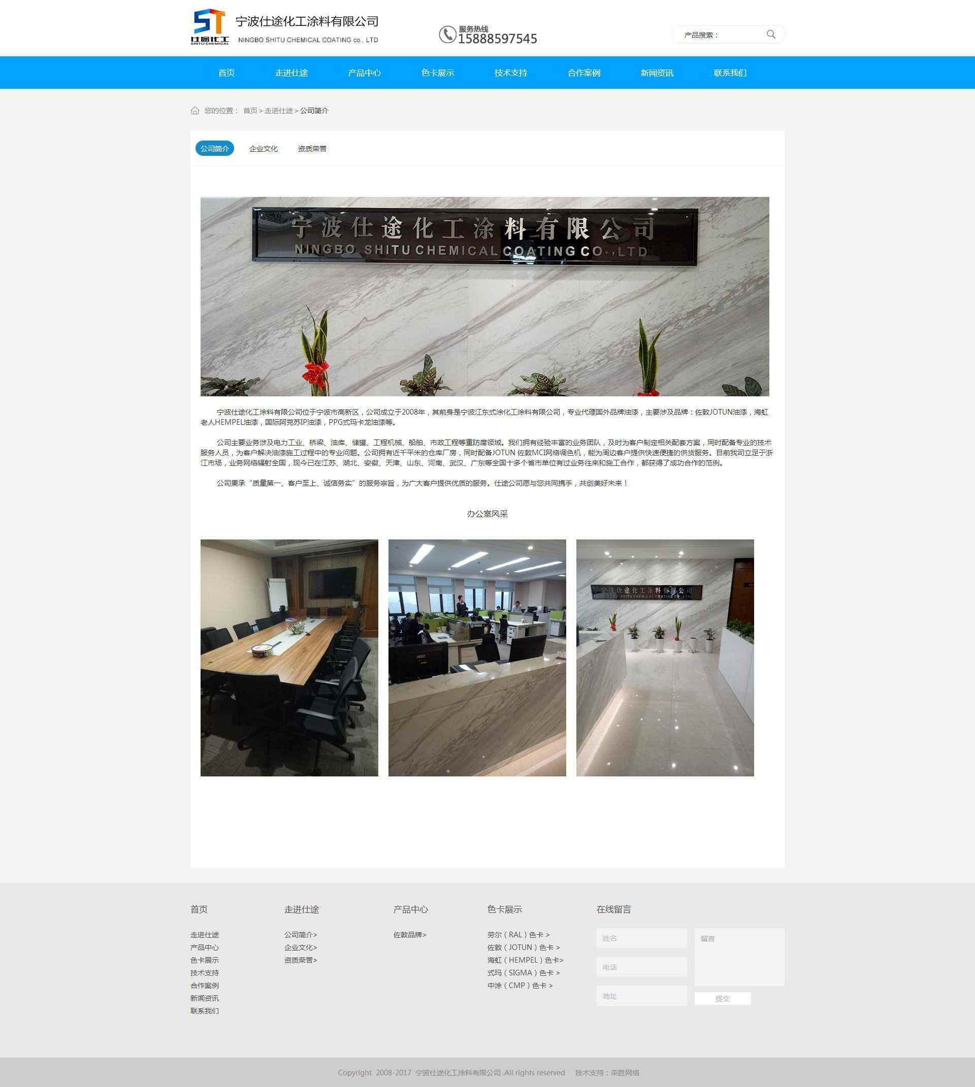 寧波仕途化工涂料有限公司位于寧波市高新區(qū),公司成立于2008年,其前身是寧波江東式涂化工涂料有限公司,專業(yè)代理國外品牌油漆,主要涉及品牌:佐敦JOTUN油漆,海虹老人HEMPEL油漆,國際阿克蘇IP油漆,PPG式瑪卡龍油漆等。