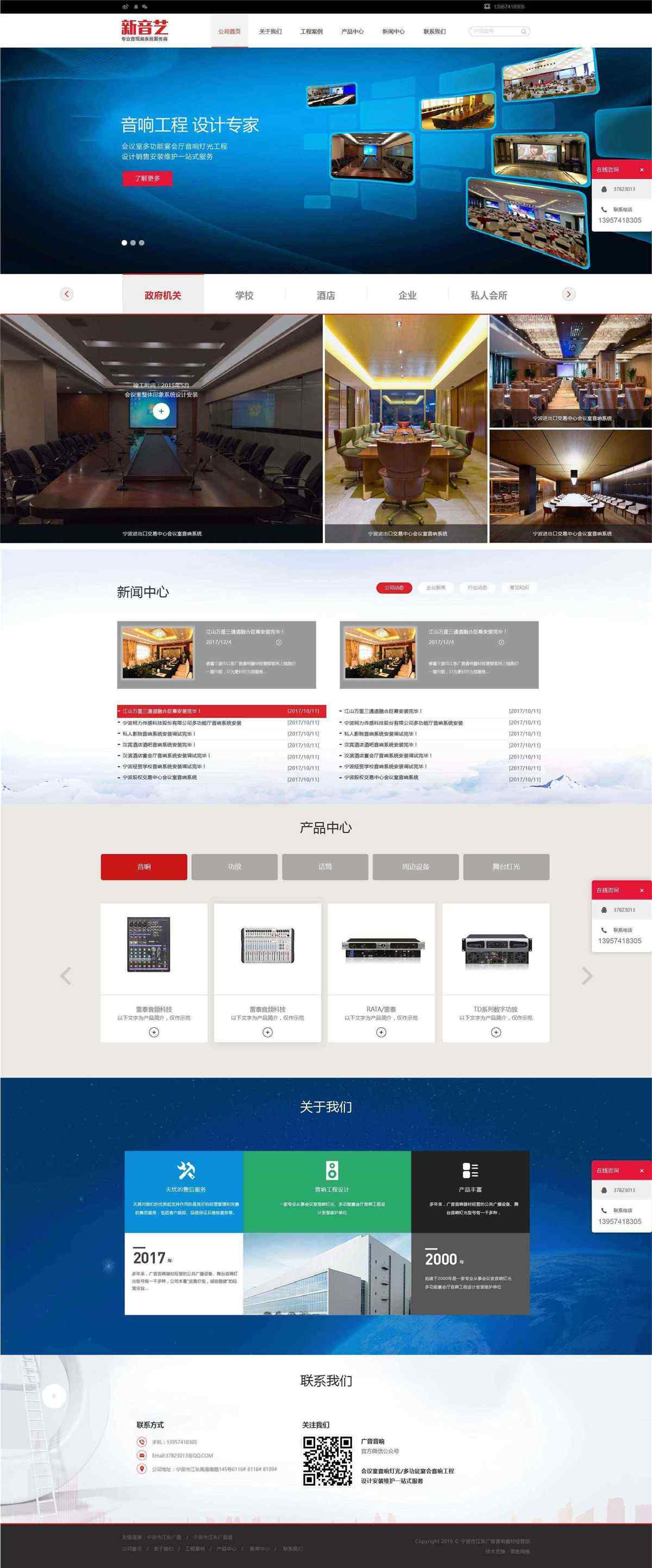 寧波新音藝音響公司始建于2000年是一家專業(yè)從事會(huì)議室音響燈光、多功能宴會(huì)廳音響工程設(shè)計(jì)安裝維護(hù)單位。多年來(lái),廣音音響器材經(jīng)營(yíng)的公共廣播設(shè)備、舞臺(tái)音響燈光型號(hào)有一千多種,公司本著“貨真價(jià)實(shí),誠(chéng)信穩(wěn)健”的經(jīng)營(yíng)宗旨,不斷地開(kāi)拓市場(chǎng),積累了豐富的經(jīng)驗(yàn)及雄厚的資金和技術(shù)力量,客戶遍及省內(nèi)外各地。尤其對(duì)我們的優(yōu)勢(shì)起支持作用的是良好的經(jīng)營(yíng)管理和完善的售后服務(wù),包括客戶跟蹤、品質(zhì)保證及維修服務(wù)等。