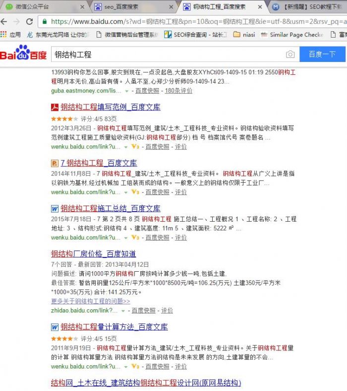 競爭程度一般,既有信息性,又有點(diǎn)商業(yè)性的詞,百度搜索 鋼結(jié)構(gòu)工程 第二頁結(jié)果