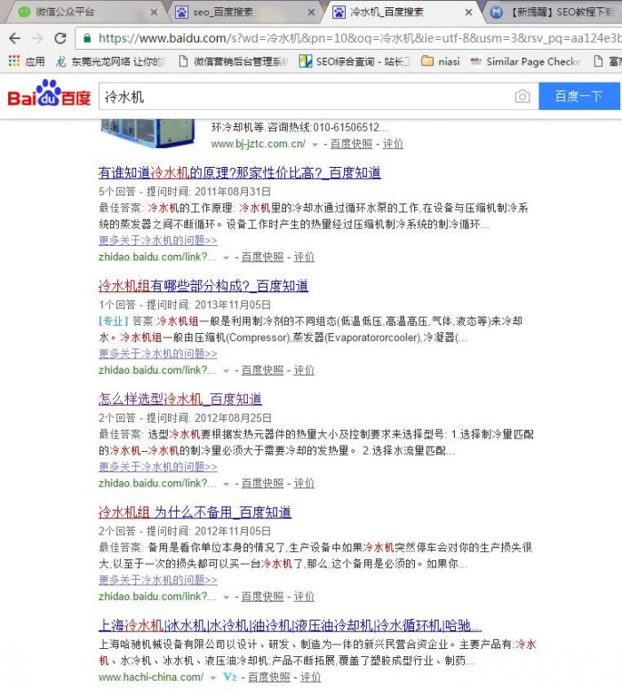 熱門點(diǎn)的,商業(yè)性更多的詞,“冷水機(jī)”的百度搜索結(jié)果第二頁: