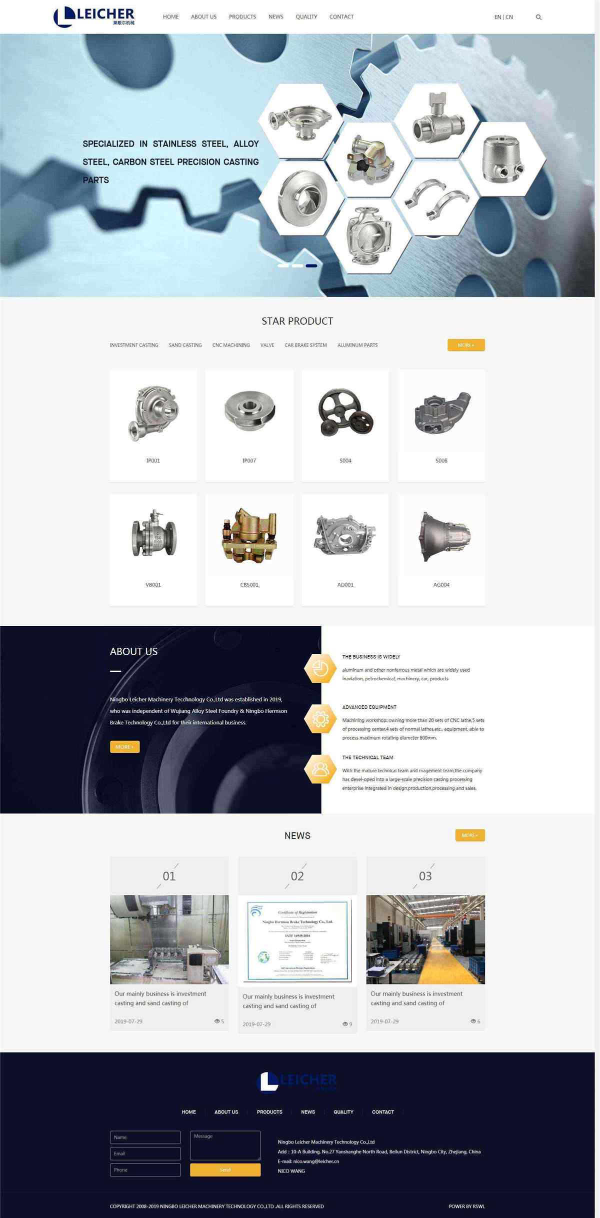 本次合作是榮勝網(wǎng)絡(luò)與寧波萊歇爾機(jī)械科技有限公司的首次合作,雙方就本次合作達(dá)成共識(shí),主要根據(jù)寧波萊歇爾機(jī)械科技有限公司的產(chǎn)品特點(diǎn)進(jìn)行官網(wǎng)開發(fā)建設(shè)。