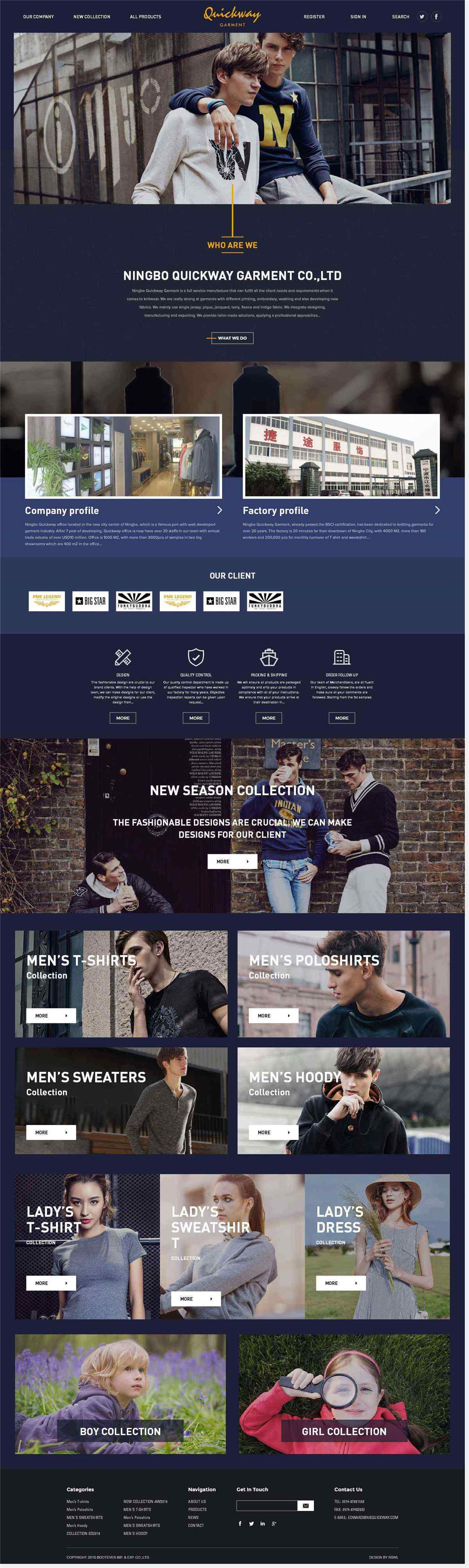 寧波捷途進(jìn)出口有限公司位于寧波的新的城市中心,這是一個(gè)著名的港口,發(fā)展服裝行業(yè)。經(jīng)過7年的發(fā)展,Quickway辦公室現(xiàn)在有20個(gè)員工在我們的團(tuán)隊(duì),年貿(mào)易額超過1000萬美元。辦公室1000平方米,有超過3000臺電腦樣品的兩個(gè)大展廳400平方米的辦公室。