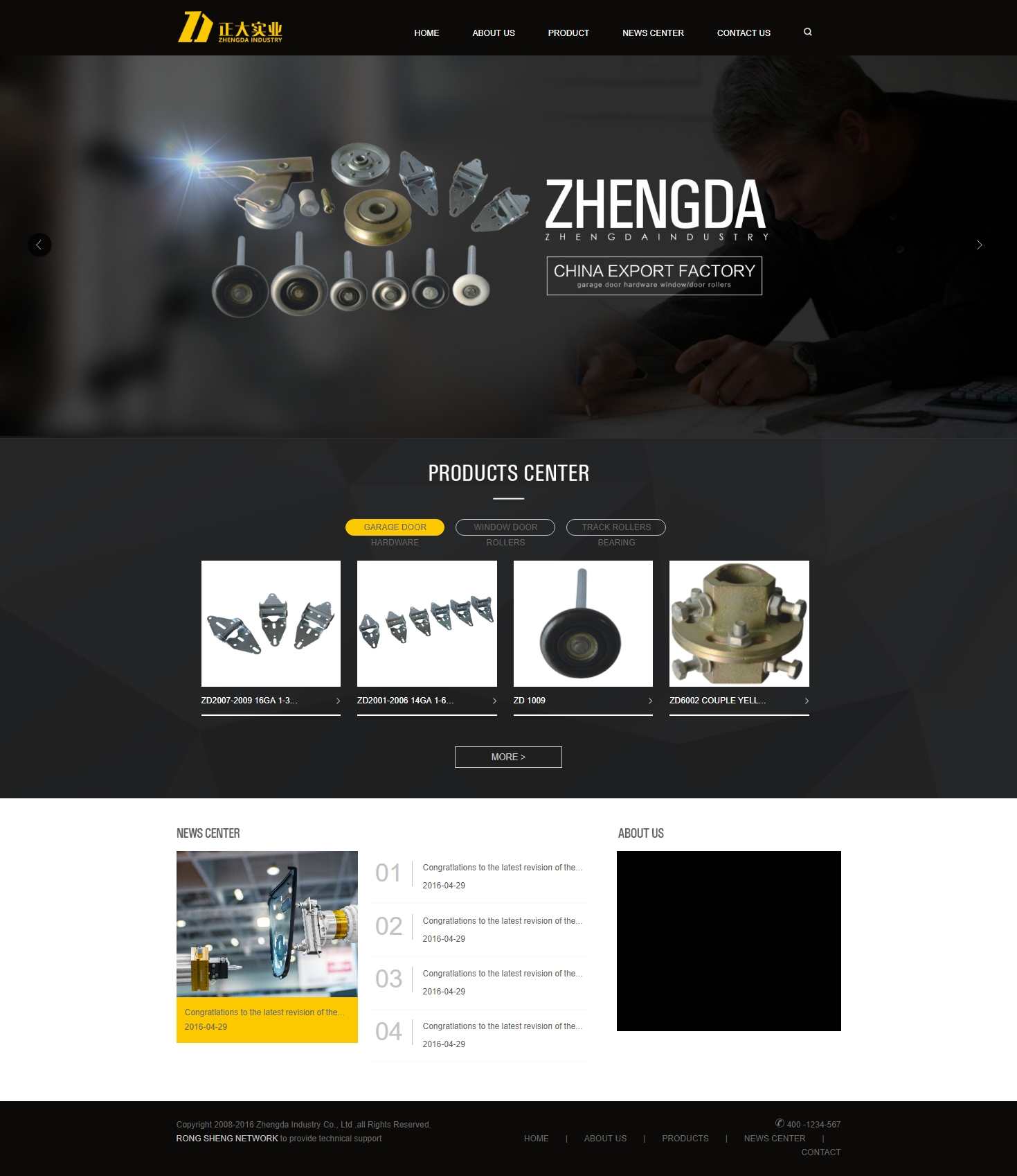 Zhengda Industry Company is a professional manufactory whose product is focused on hardware accessories for garage door, fittings for rollers used for windows and doors, precise bearings and all sorts of punching hardware. Zhengda has more than 10 years of experience in manufacture, strong technical support, advanced production technique and strict test method. The main product include steel rollers, nylon rollers, hinges, brackets, couples, locks, pulley series, safety devices, tracks, springs, etc.
