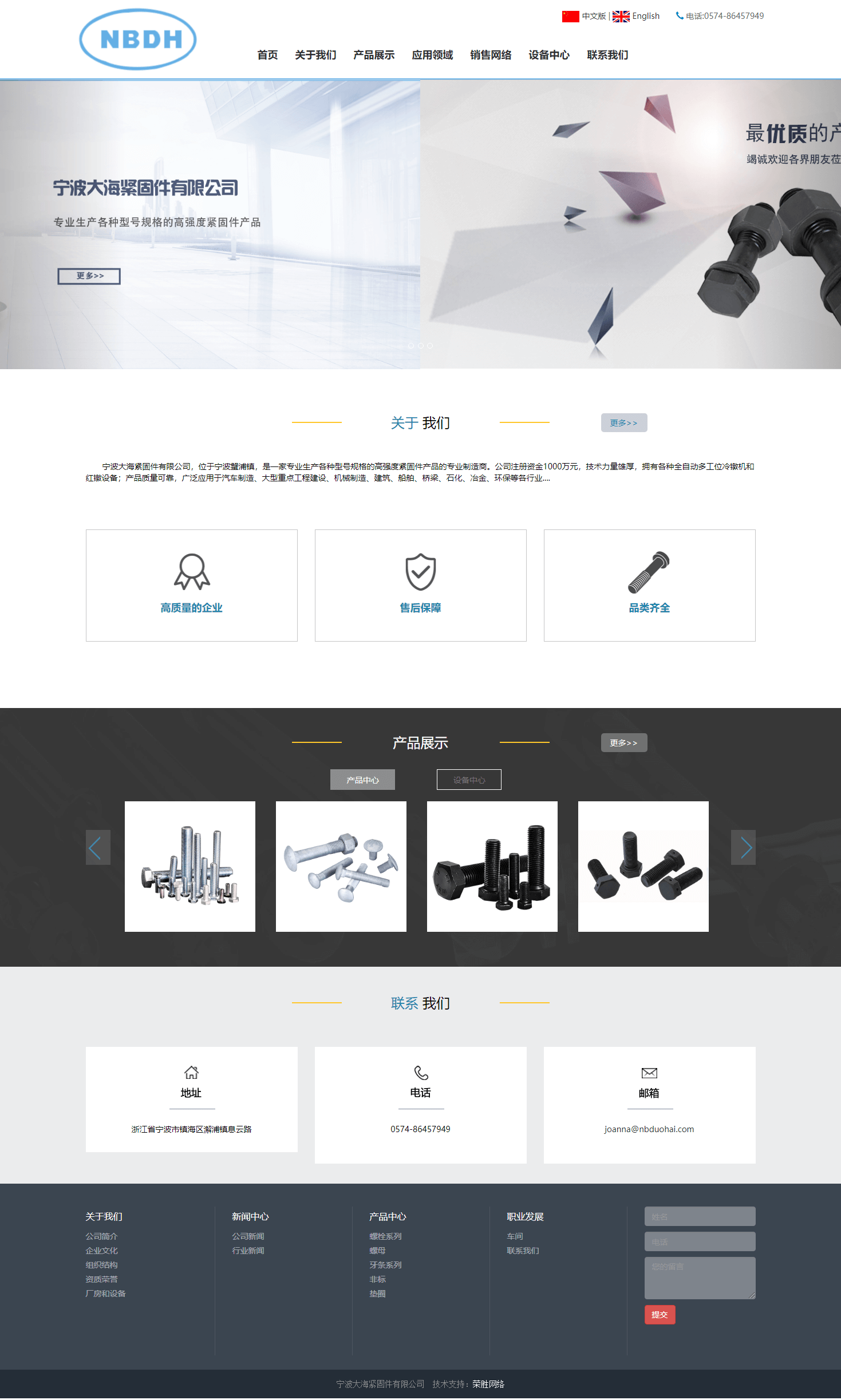本次合作是榮勝網(wǎng)絡與寧波大海緊固件有限公司的第一次合作,雙方就本次合作達成共識,主要根據(jù)寧波大海緊固件有限公司的產(chǎn)品特征進行官網(wǎng)建設開發(fā)。