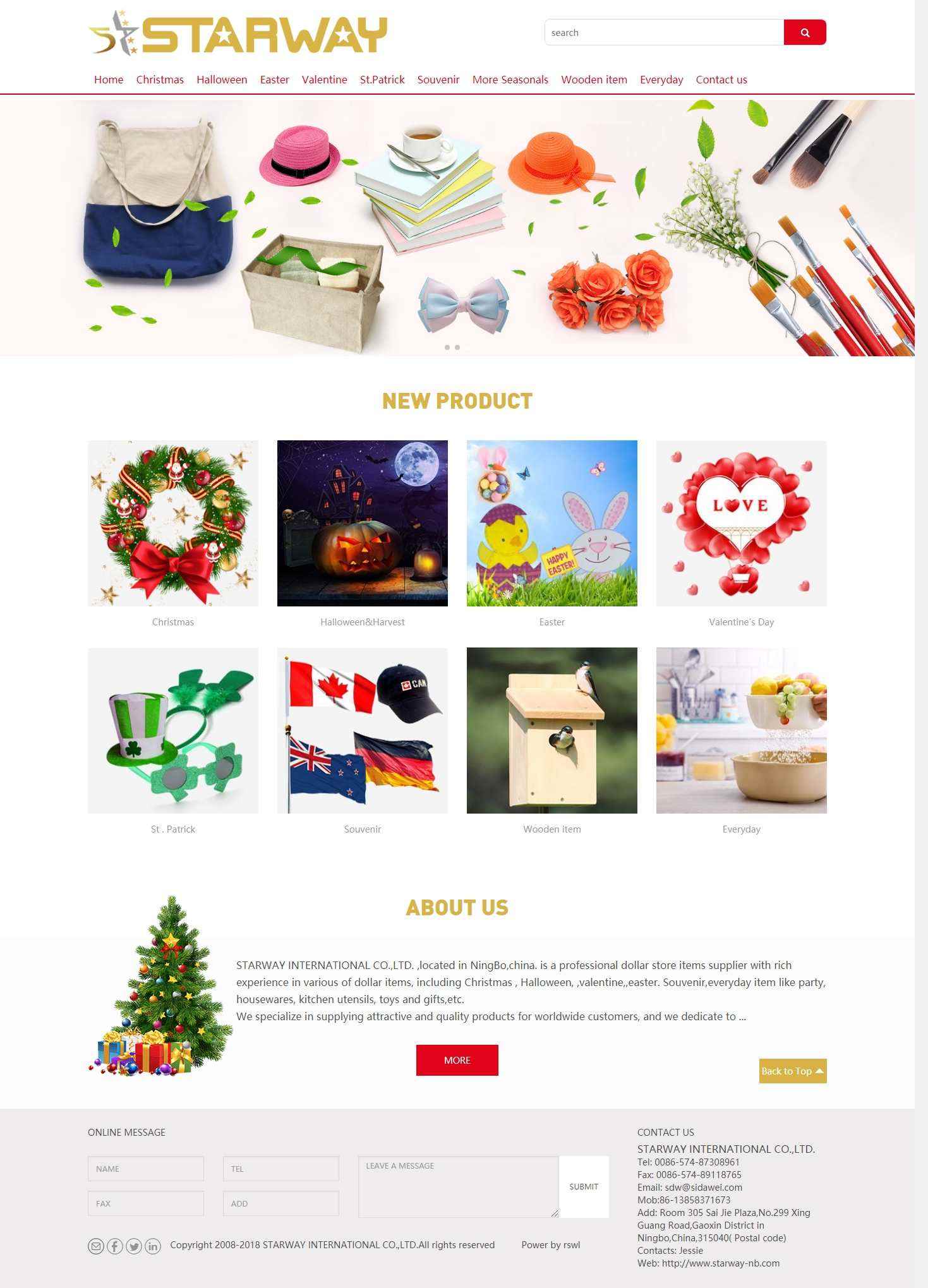 STARWAY INTERNATIONAL CO.,LTD. ,located in NingBo,china. is a professional dollar store items supplier with rich experience in various of dollar items,including Christmas , Halloween, ,valentine,,easter. Souvenir,everyday item like craft, party, housewares, kitchen utensils, toys and gifts,etc.