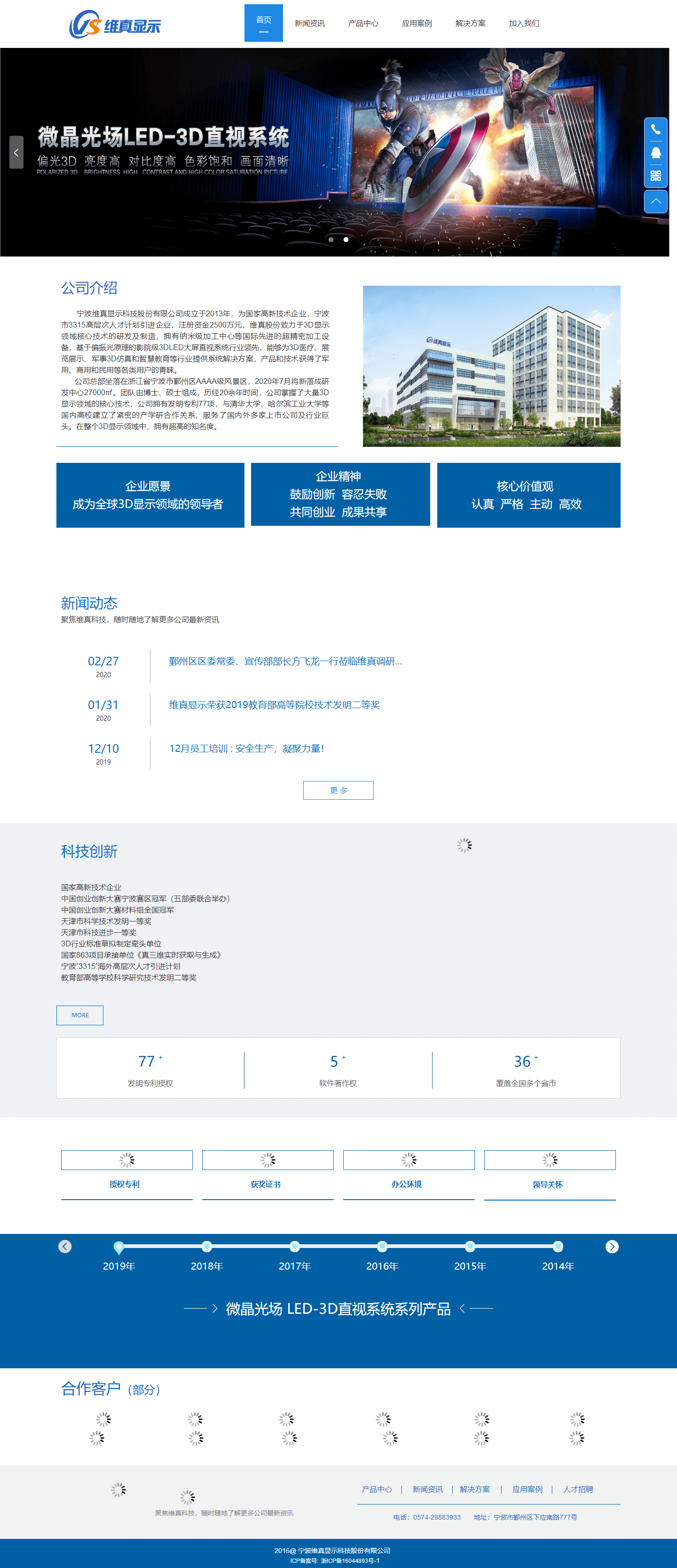 公司總部坐落在浙江省寧波市鄞州區(qū)AAAA級(jí)風(fēng)景區(qū),2020年7月將新落成研發(fā)中心27000㎡。團(tuán)隊(duì)由博士、碩士組成,歷經(jīng)20余年時(shí)間,公司掌握了大量3D顯示領(lǐng)域的核心技術(shù),公司擁有發(fā)明專利77項(xiàng),與清華大學(xué)、哈爾濱工業(yè)大學(xué)等國內(nèi)高校建立了緊密的產(chǎn)學(xué)研合作關(guān)系,服務(wù)了國內(nèi)外多家上市公司及行業(yè)巨頭。在整個(gè)3D顯示領(lǐng)域中,擁有超高的知名度。