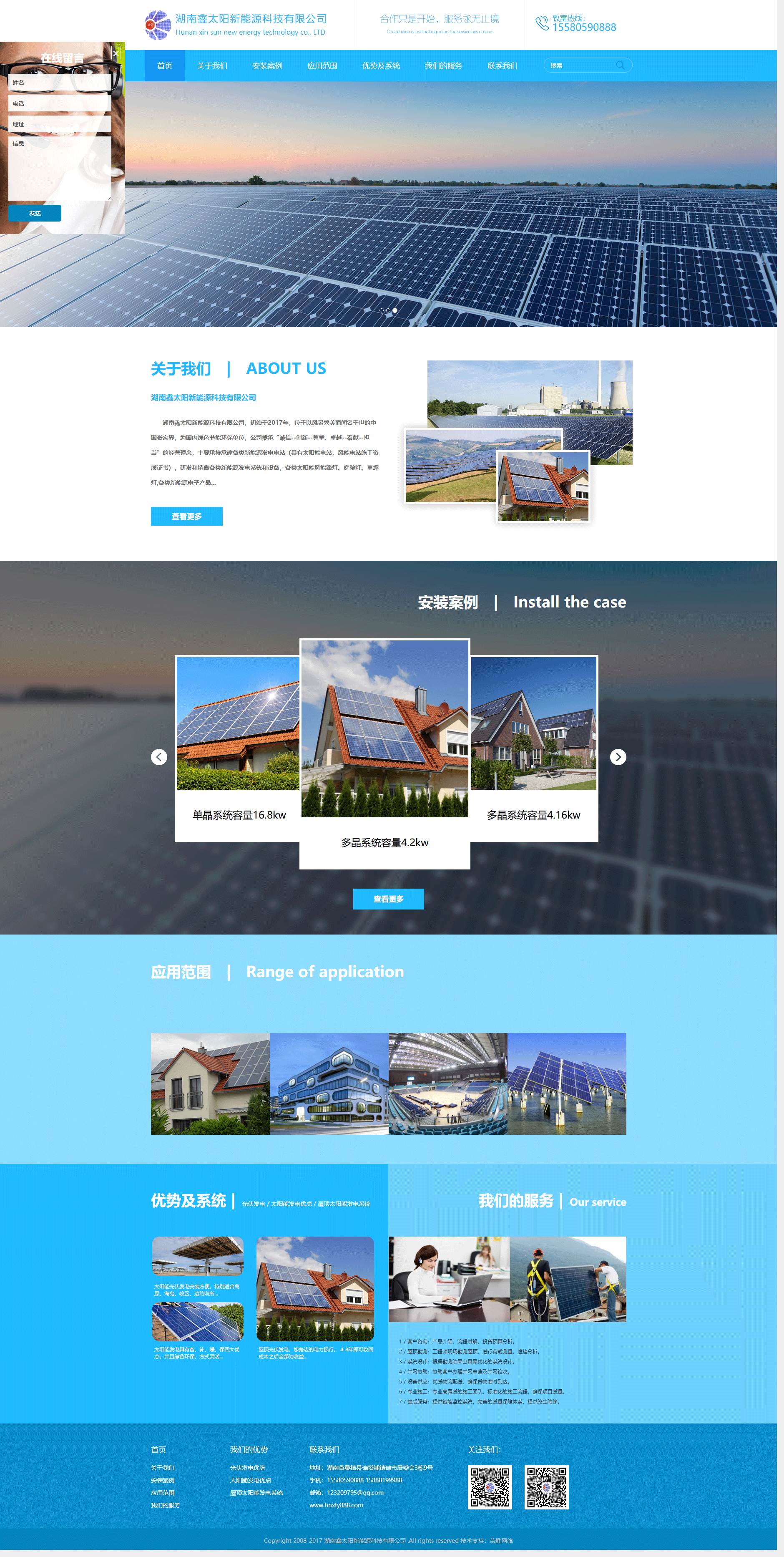 本次合作是榮勝網(wǎng)絡與湖南鑫太陽新能源科技有限公司的第一次合作,雙方就本次合作達成共識,主要根據(jù)湖南鑫太陽新能源科技有限公司的產(chǎn)品特征進行官網(wǎng)建設開發(fā)。