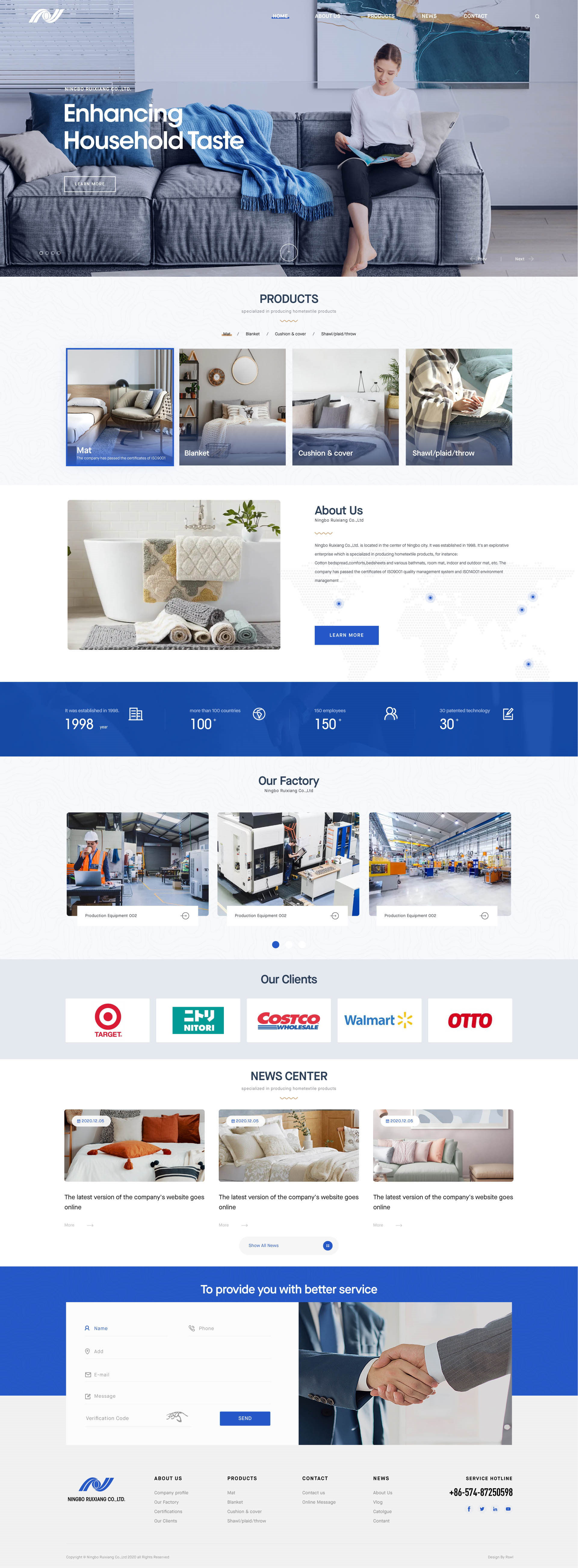 Ningbo RuixiangCo.,Ltd. is located in the center of Ningbo city. It was established in 1998. It's an explorative enterprise which is specialized in producing hometextile products, for instance: