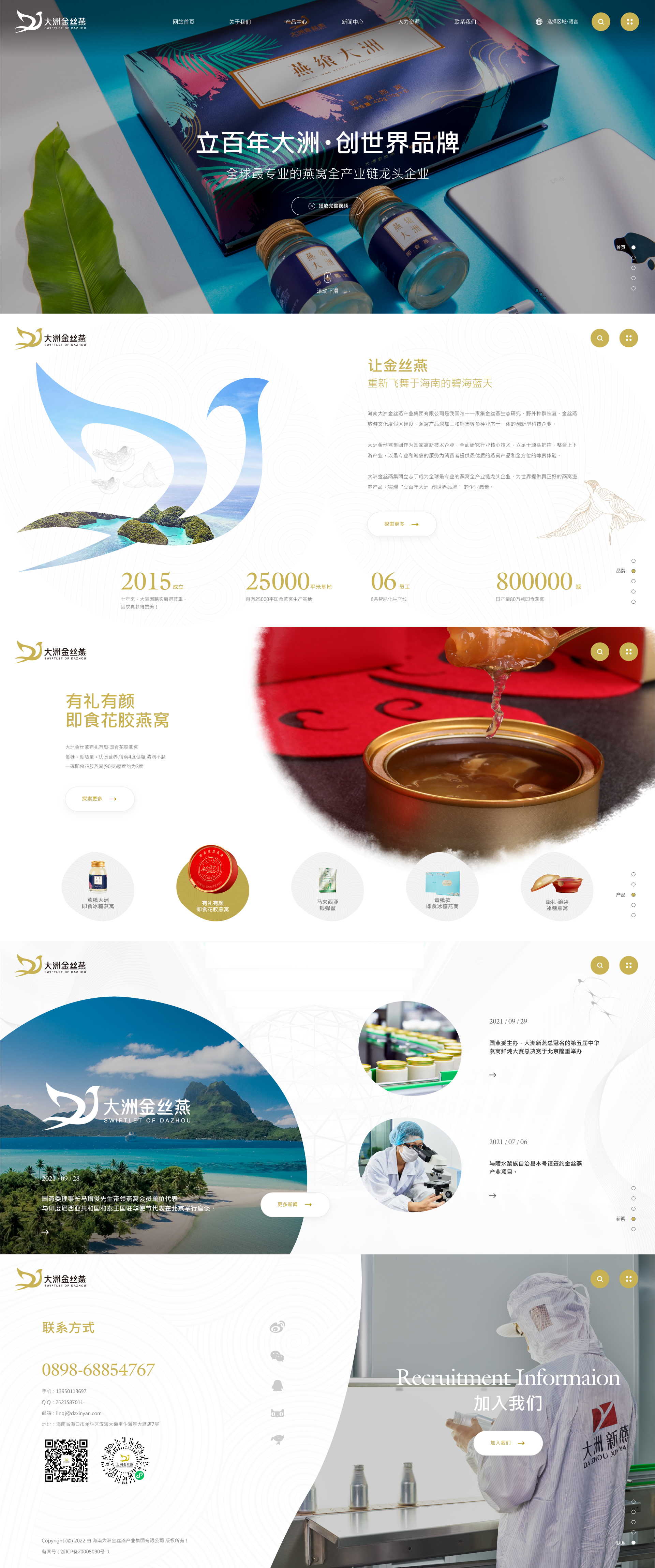 海南大洲金絲燕產(chǎn)業(yè)集團(tuán)有限公司是我國唯一 一家集金絲燕生態(tài)習(xí)性研究、野外種群恢復(fù)、金絲燕主題文化旅游度假區(qū)建設(shè)、燕窩產(chǎn)品深加工和銷售等多種業(yè)態(tài)于一體的全產(chǎn)業(yè)鏈創(chuàng)新型國家高新技術(shù)企業(yè),集團(tuán)擁有成熟的科研創(chuàng)新力、產(chǎn)業(yè)整合力和智造生產(chǎn)力。