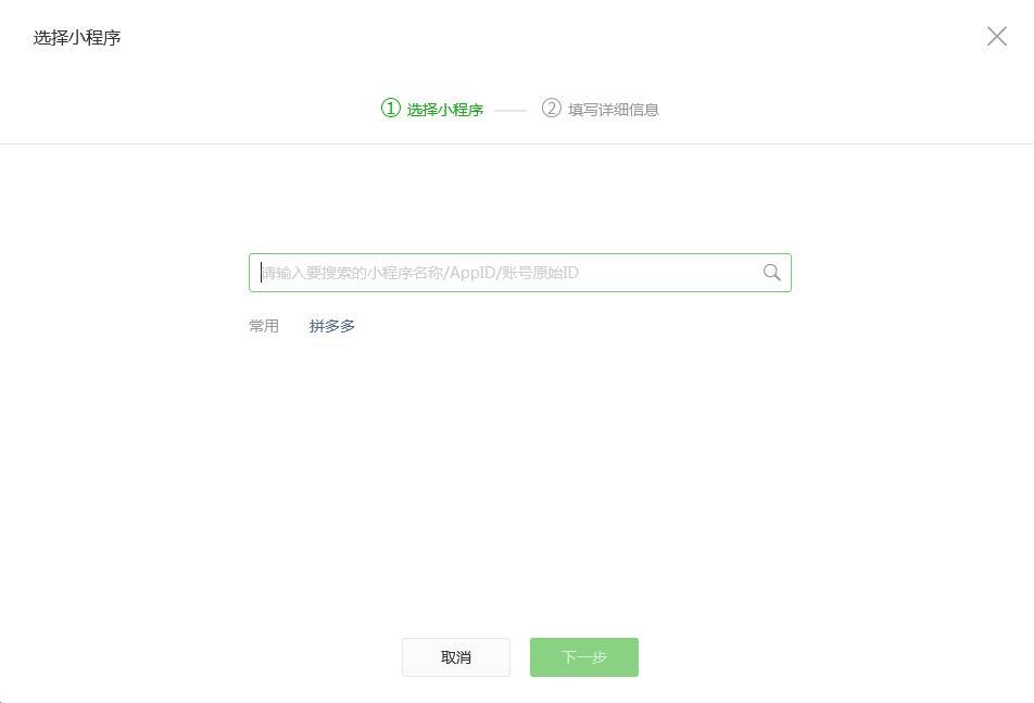 在微信公眾號掛載小程序的時候,會出現(xiàn)小程序搜索的頁面。這里可以搜索所有微信上可被搜索的小程序。這意味著,公眾號無需綁定小程序,可實現(xiàn)自由掛載。