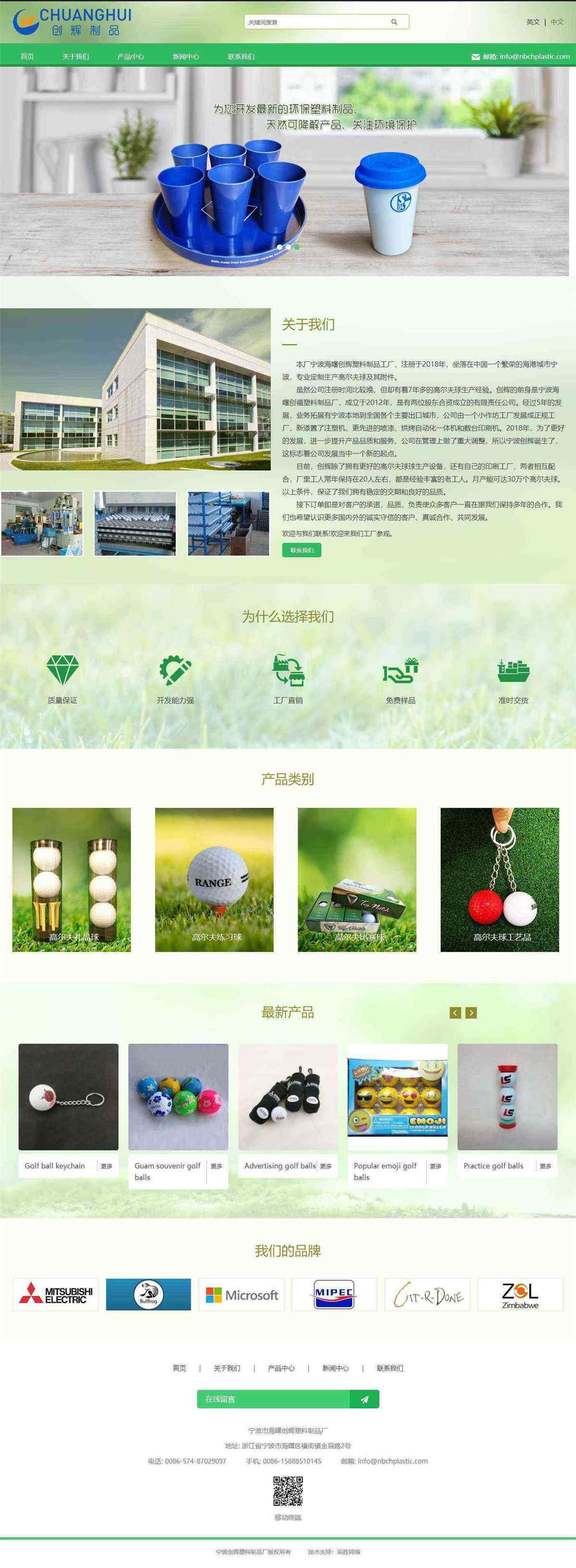 本廠寧波海曙創(chuàng)輝塑料制品工廠,注冊于2018年,坐落在中國一個繁榮的海港城市寧波,專業(yè)定制生產(chǎn)高爾夫球及其附件。